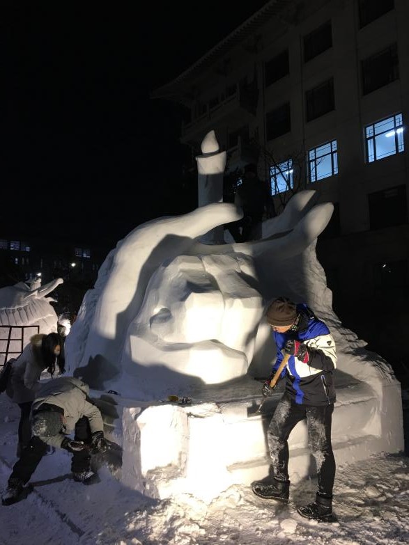 日前,2017第九届国际大学生雪雕大赛在哈尔滨落幕,我校成人影视片 工业设计专业学生娄爽团队完成的参赛作品《停战》获三等奖。