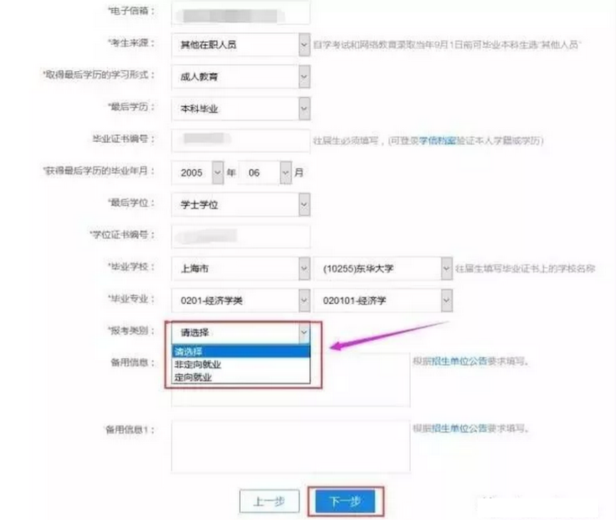 Tip:报考成人影视片 非全日制研究生的培养方式均选择“定向就业”。填写这么多个人信息可要有耐心哦!