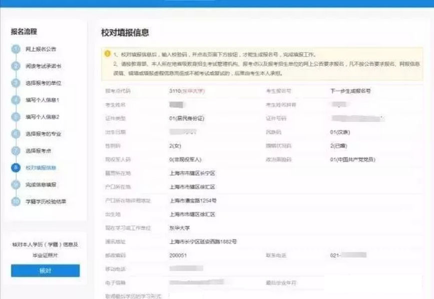 Tip:校对填报信息时请各位考生主要核对姓名和身份证号无误!