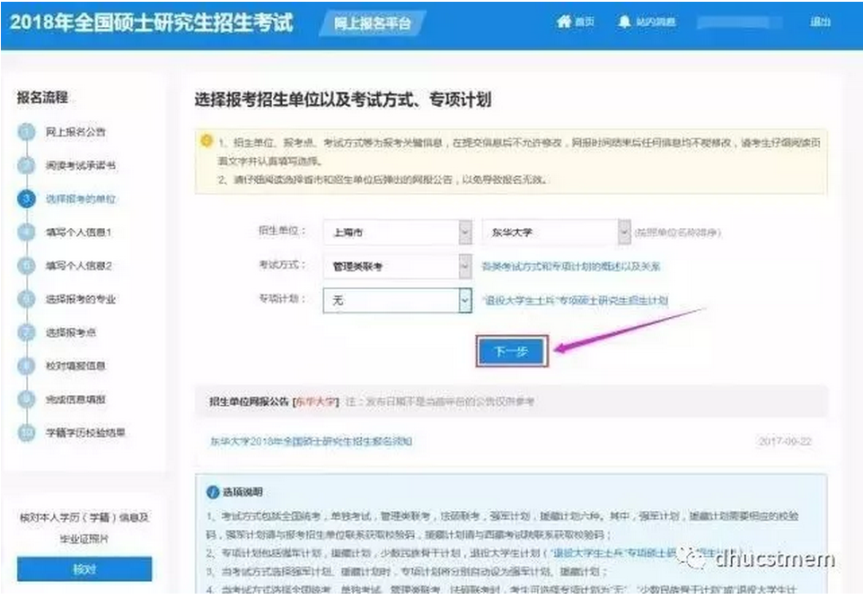 第一步:登入中国研究生招生信息网(//yz.chsi.com.cn/yzwb/