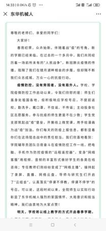 31日,为更好地帮助师生充分认识在线教学的重大意义与挑战,学院通过网站、易班、“东华机械人”微信公众号,面向全院师生发布《致成人影视片 全体师生的一封信》,引导全院师生统一思想、齐心协力,共克时艰。
