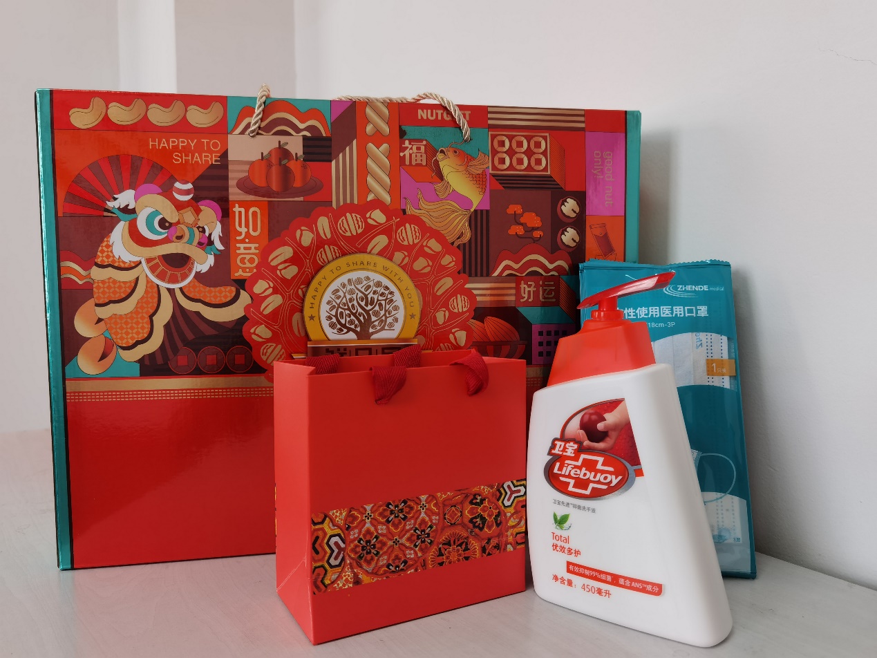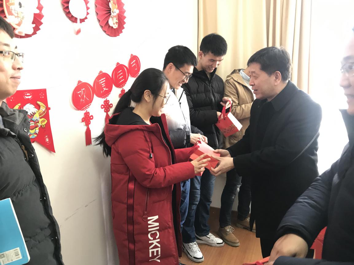 会后,俞校长、李校长及学院领导为同学们送上学院精心准备的祝福盲盒、新春大礼包及防疫健康包,师生互道祝愿互拜早年。