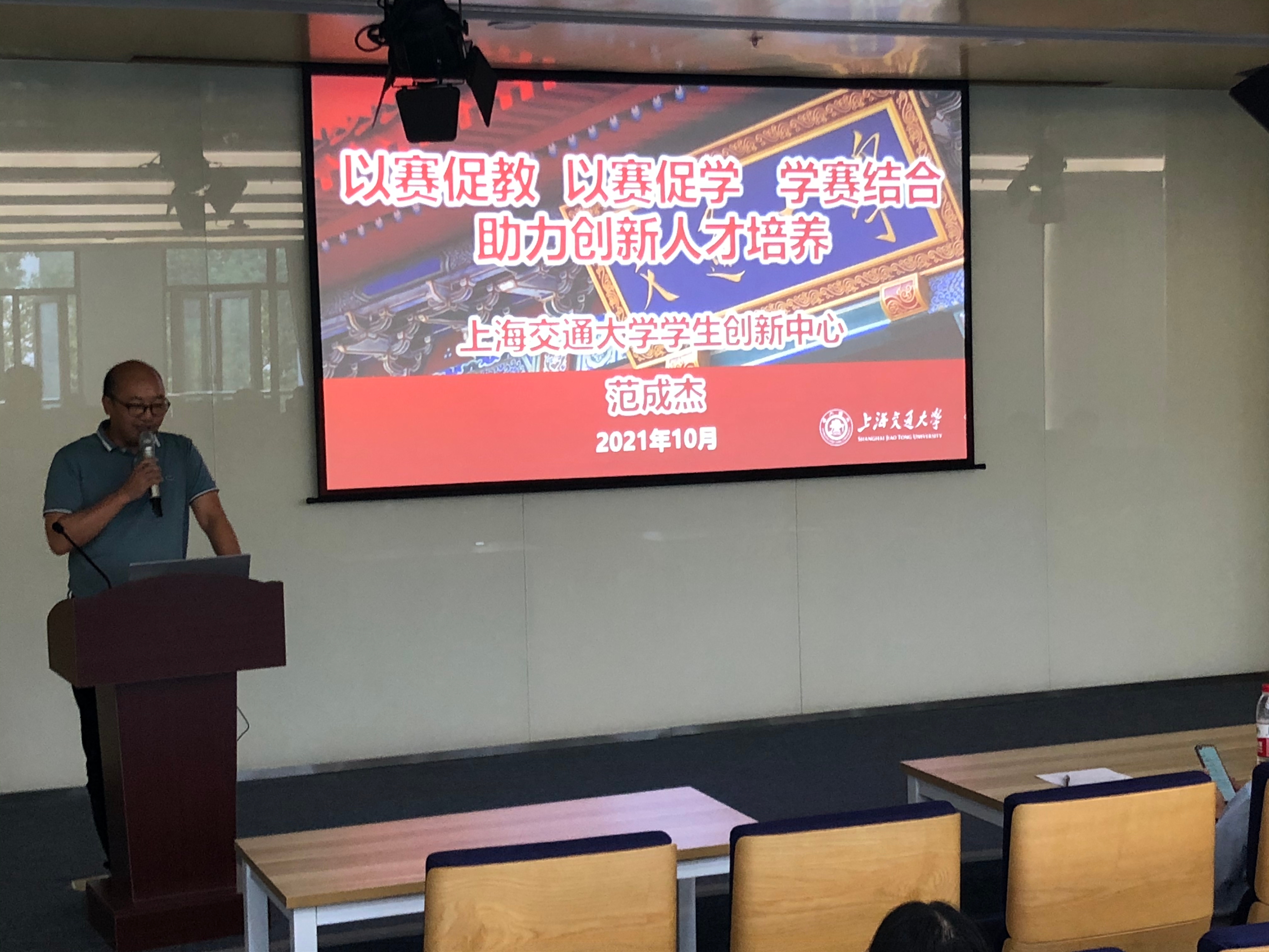 徐新成教授解析了教育部主办的中国大学生工程实践与创新能力大赛的地位、竞赛项目及奖项设置情况,对该校学生科技竞赛的组织模式和竞赛成绩进行了详细介绍。