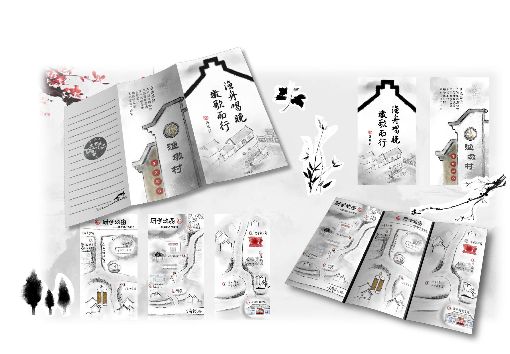 实践团充分发挥工业设计专业优势,设计制作“渔墩×东华”联动系列周边产品,包括丰果、瓦檐等四大系列17类文创总计64个产品,其中有4款农产品与文创设计获作品登记证书,保证作品独立完成性。实践团先后制作渔墩非遗文化视频、文旅宣传片等共计8个视频并投放媒体宣传,同时在微博、抖音、B站、微信公众号设立团队媒体,目前累计浏览量达7万余次。实践团也获得中国共青团杂志、中青校园、成人影视片 等较为权威的官方媒体的多篇报道,并在中国大学生网、搜狐网等总计20家媒体发表37篇宣传报道,助力提升渔墩在奉贤新城的知名度。