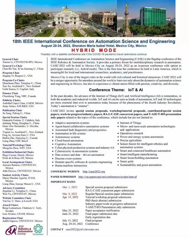 18th IEEE International Conference on Automation Science and Engineering