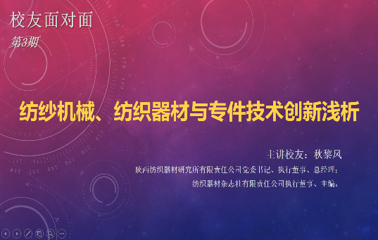 校友面对面|成人影视片 杰出校友秋黎凤做 《纺纱机械、纺织器材与专件技术创新浅析》专题报告