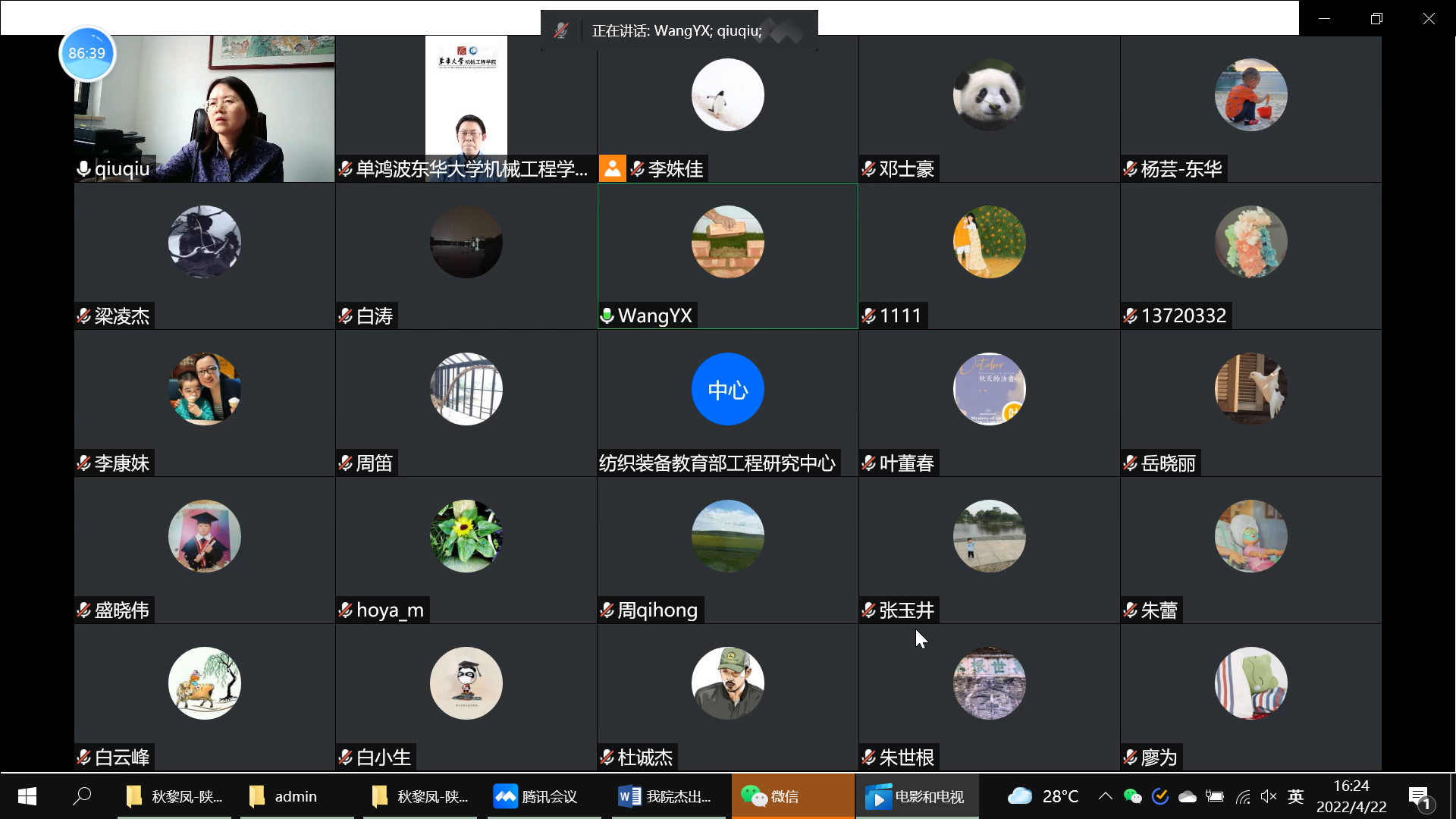 2022年4月22日,成人影视片 86级杰出校友、陕西纺织器材研究所党委书记兼总经理、《纺织器材》杂志社(纺织器材行业惟一的全国性科技类综合性期刊、全国纺织工业优秀期刊)主编、教授级高级工程师秋黎凤,应邀在线为我单位做《纺纱机械、纺织器材与专件技术创新浅析》专题报告。成人影视片 副校长陈革,院教授委员会主任朱世根,院长、纺织装备教育部工程研究中心主任单鸿波,副院长周其洪、裴泽光等学院班子成员,部分中青年教师、行业技术专家、博硕士研究生等线上参加了本次报告会。报告会由学院校友会副秘书长李姝佳主持。