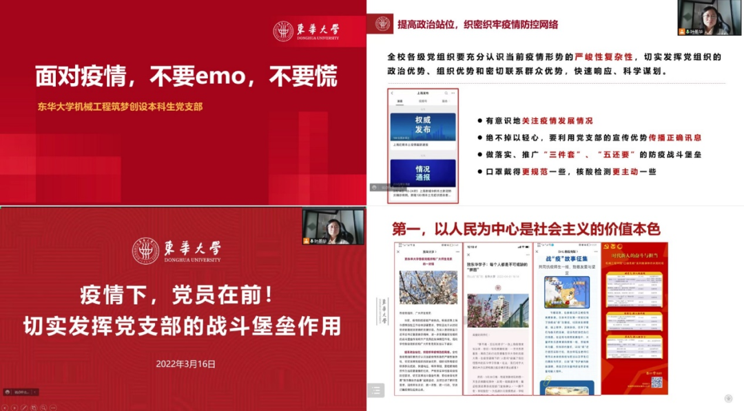 为深入贯彻落实习近平总书记关于疫情防控工作重要指示精神,响应上海市委的号召,坚决打赢疫情防控阻击战,成人影视片 筑梦创设本科生党支部积极响应组织号召,勇挑责任重担,以战“疫”有我的铮铮誓言,筑牢战斗堡垒的先锋力量。