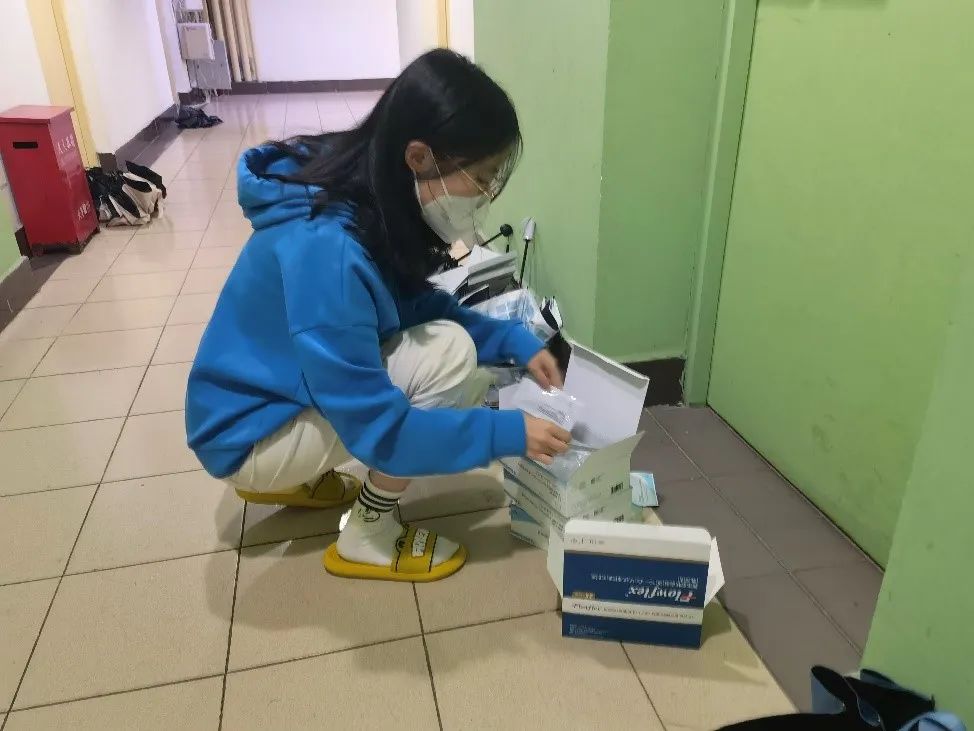 负责把每日三餐、抗原以及其他防疫物资从一楼搬到六楼并逐个宿舍发放,同时监督并催促每个宿舍及时进行核酸和抗原检测的结果打卡,经过一个多月的防疫志愿工作,他深刻地体会到了防疫工作人员的不容易,每个人都在默默地付出着,为了早日结束疫情做出着贡献,他说要向众多志愿者学习,学习他们不怕苦不怕累的精神,以饱满的姿态继续为大家服务。