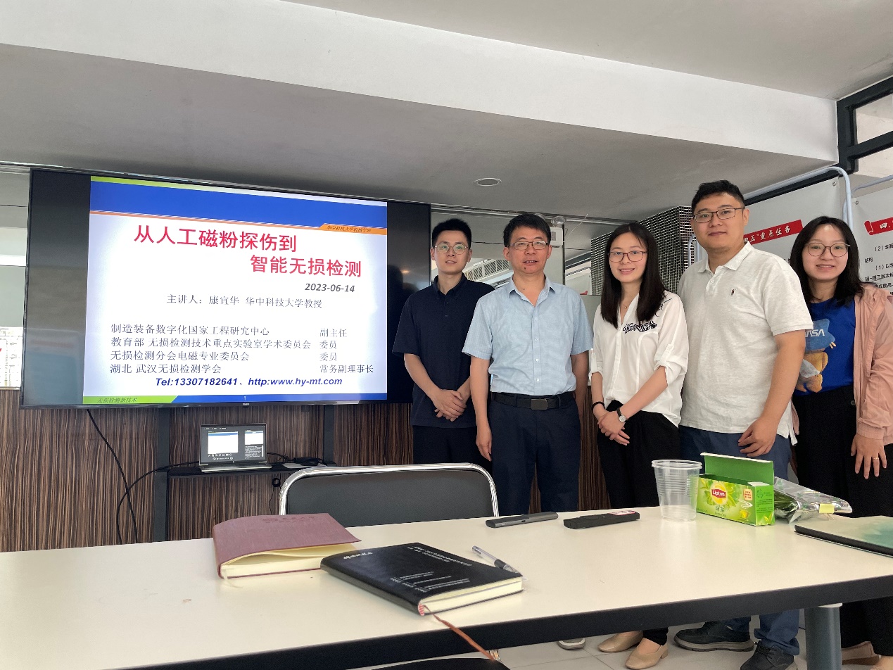 6月14日上午,华中科技大学教授康宜华应邀为成人影视片 做题为“从人工磁粉探伤到智能无损检测”的学术报告。智能制造团队骨干成员李心雨特聘研究员、李婕老师,相关中青年教师、部分博士生和硕士生参加了此次学术报告会。报告由杨芸老师主持。