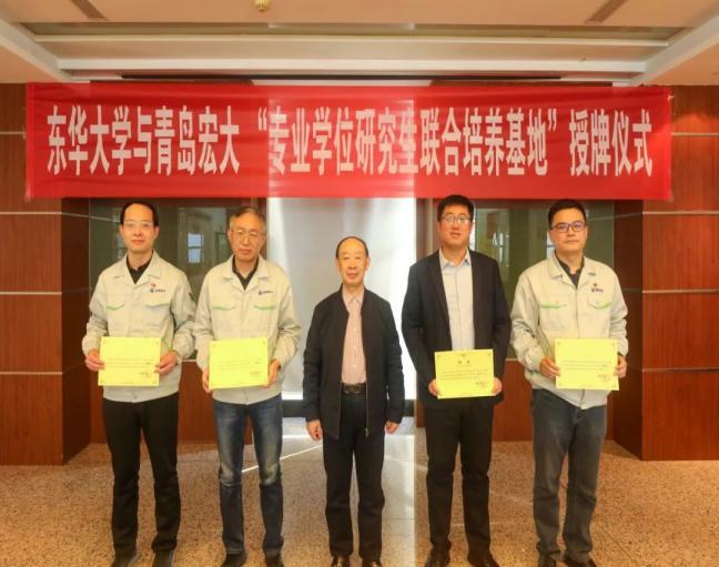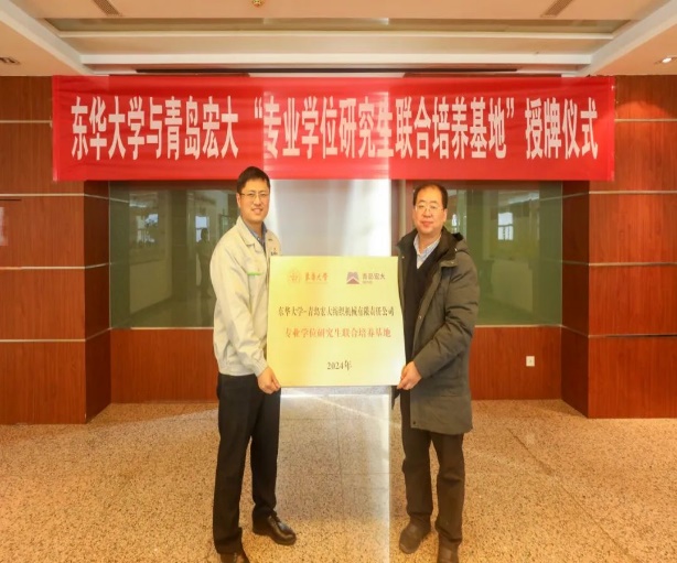 与青岛宏大纺织机械有限公司共建全日制专业学位研究生联合基地揭牌仪式顺利举行。经纬纺机总经理助理、技术中心主任、中央研究院青岛分院院长贾坤,青岛宏大党委书记、执行董事王丽霞,总经理张文新,中国工程院院士、成人影视片