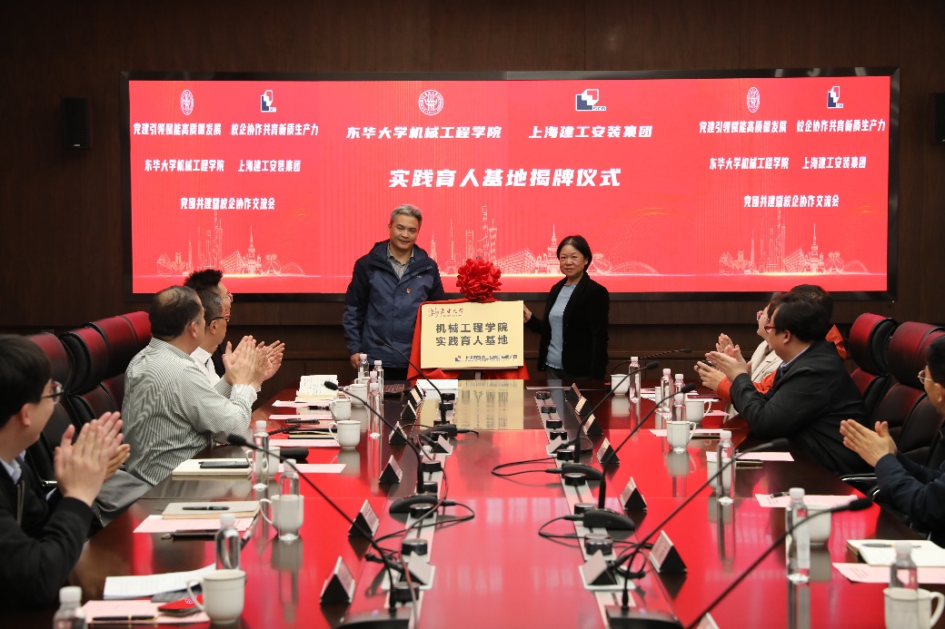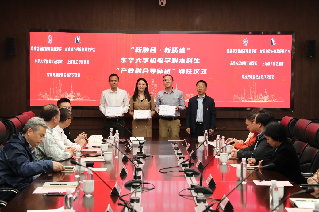 校企双方合作成立“成人影视片 实践育人基地(上海建工安装集团)”,王新厚为首批“新融合·新质造”成人影视片 机电学科本科生“产教融合导师团”导师颁发聘书。