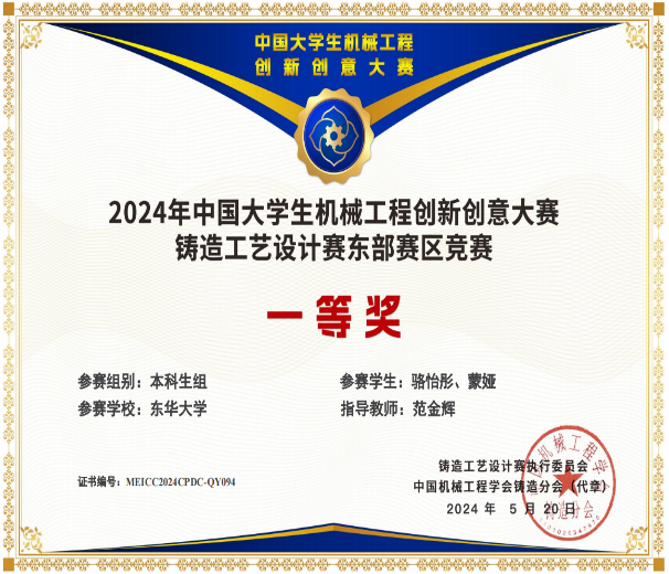 本次赛事共有132所参赛院校的1715份作品报名参赛,经校内选拔赛,最终819份作品提交至执委会参加区域赛,其中本科生组作品715份,硕士研究生组作品104份。铸造工艺设计赛全国总决赛初评评选会议于2024年5月30日在辽宁省沈阳市召开,会议期间产生了本届赛事的三等奖(部分)及入围全国总决赛终评的作品名单。我校研究生组的巩文迪、彭辉和戚潇阳同学获得了全国三等奖的好成绩,并且本科生组的骆怡彤和蒙娅同学与研究生组的尚坡、王鹭和程健森同学都进入到了决赛。后续铸造工艺设计赛总决赛终评会议将在7月8日前后举行,将与全国优秀院校角逐名次。