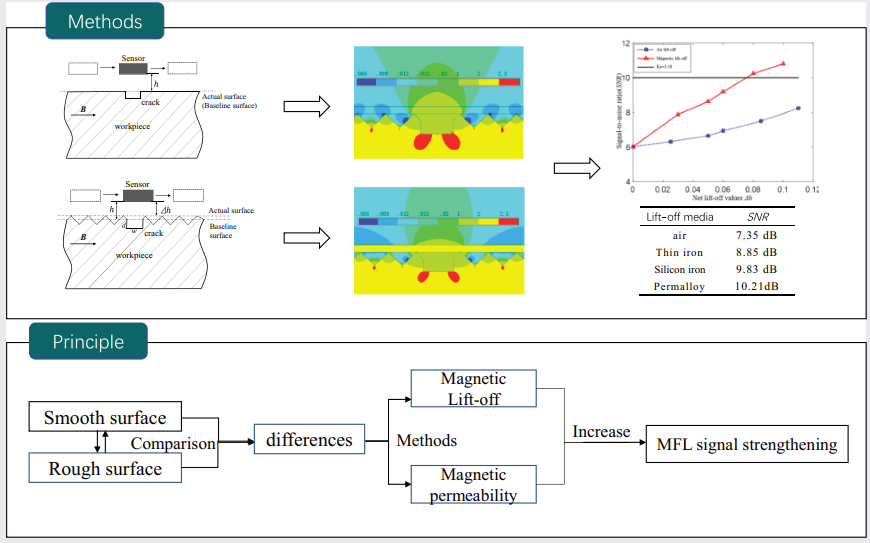 安全结构件广泛应用在机械装备、汽车高铁、核工业、航空航天等领域,其质量和可靠性直接影响着运行安全,裂纹等缺陷的存在会导致重大安全事故,甚至人员伤亡和财产损失。安全结构件在缺陷检测精度和检出率方面更为严格,要求0漏检。随着裂纹检测精度要求的提高,工件表面形貌特征对微裂纹信号检出能力的影响不容忽视,杨芸副教授提出了基于提离介质磁特性的粗糙表面微裂纹信号信噪比提升方法,该成果以“A new SNR enhancement method in MFL detection for microcracks on rough surface based on the ferromagnetic lift-off layer为题发表于该领域国际知名期刊Nondestructive Testing and EvaluationIF=3),成人影视片 为唯一通讯作者单位,杨芸副教授为该论文的第一作者。文章链接:DOI:10.1080/10589759.2024.2357229