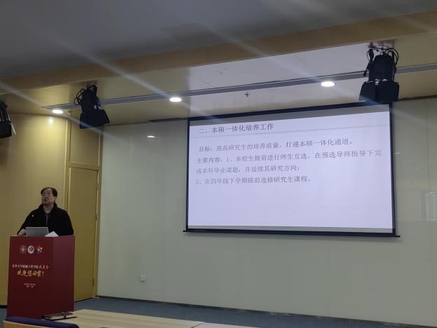 11月5日,学院召开硕士研究生工作会议。会议由研究生教学工作分管副院长白涛主持,主要围绕硕士研究生招生、培养方案修订及培养模式探索等方面展开交流。会上,白涛介绍了今年的研究生招生宣传情况和推免生预录取工作进展,并对导师们在招生工作中的辛勤付出表达了诚挚感谢。为响应国家拔尖人才培养战略,结合今年推免生录取工作,学院通过将本校预录取推免生提前进入研究生培养阶段的改革措施,推进本研一体化培养模式。